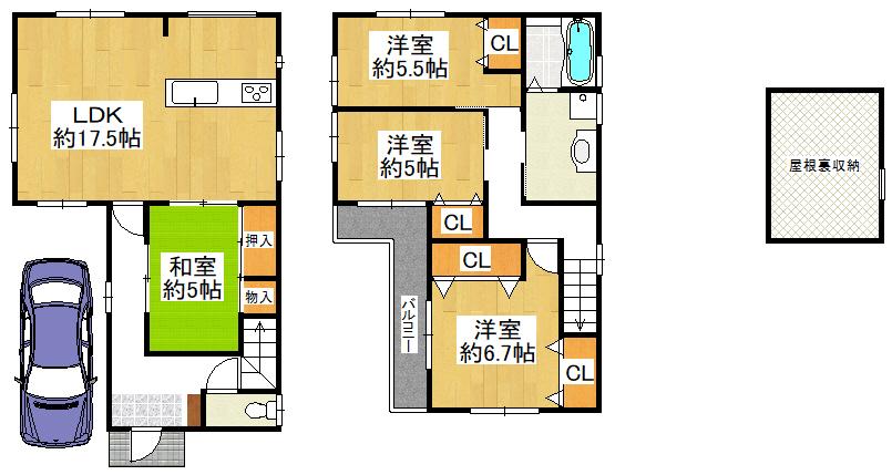 ■屋根裏収納付きで収納豊富