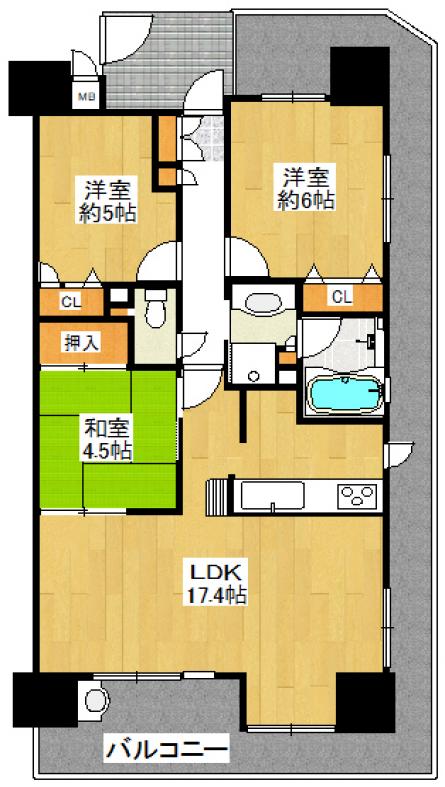 | 専有面積 | 70.77u | バルコニー面積 | 26.87u |